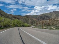 A road winding through the mountains of Utah, surrounded by stunning natural beauty. Clear skies and fluffy clouds create a picturesque backdrop. This asphalt road in the USA is a perfect spot for a scenic drive.