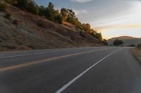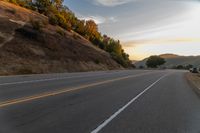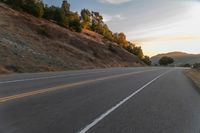 This is an image of a rural landscape at dawn. The asphalt road winds through the mountainous terrain, surrounded by trees and vegetation. The highland hill in the background adds to the scenic beauty of the area. The sky is filled with clouds, adding to the atmospheric feel of the image. The road surface is visible, showing the tar and thoroughfare. The slope of the land creates an interesting perspective for the viewer. This photo captures the serene and picturesque beauty of the countryside at the break of day.