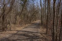 This is a beautiful autumn landscape in Ontario, Canada. The image captures a dirt road surrounded by a dense forest of deciduous trees. The clear sky overhead enhances the vibrant colors of the trees and the fallen leaves on the road surface. The freezing temperatures of the season give a tints and shades effect to the vegetation, creating a picturesque scene. In the distance, you can see the outline of Toronto, adding a touch of urbanity to the natural setting. This photo perfectly captures the beauty of nature in Ontario during the autumn season.