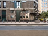 A view of a modern architecture building in the city of Amsterdam, Netherlands. The building stands in a bustling residential area with lined trees and urban infrastructure. It is a vibrant representation of European urban design.