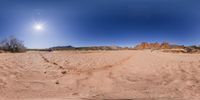 a panoramic view of the landscape in a desert area with tracks and rocks