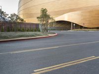 A modern architectural marvel in Las Vegas, Nevada. The building stands tall against the early morning light. The sleek lines and composite materials give it a unique urban design. The surrounding vegetation provides a contrasting natural element.