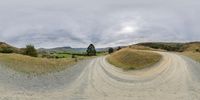An off-road track in the South Island of New Zealand, surrounded by the stunning natural landscape. The dirt road leads to an elevated mountain pass, with grey skies and rain clouds passing overhead.