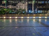 Night View of Berlin's Cityscape: Neon Lights and Plaza