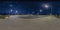 a wide angle view of the street at night with all lights turned on in this time lapsure photo