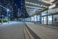 This stock photo captures an empty sidewalk outside a modern architectural building in Toronto, Canada at night. The lights reflecting on the side of the building create a captivating visual effect. The straight road leads down the city, showcasing the urban design and cityscape. This mixed-use building with a stylish facade is a part of Toronto's metropolitan area and represents the modern urban lifestyle. The image features an impressive office building, possibly headquarters, with a hotel and condominiums. The walkway, plaza, and courtyard add to the charm of this urban setting. The artificial light creates a dark yet vibrant atmosphere, representing the bustling city life. The photo depicts the business district of Toronto, known for its sophisticated urban aesthetic. The surface of the walkway and the surrounding environment indicate a well-maintained and thriving human settlement. The image captures the essence of urban transport and the importance of architectural design in the city's landscape. Hinterhof.