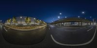 a fisheye lens photograph shows an empty street at night in the city of las vegas