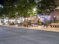 This is an image of a modern architecture in Holland, Netherlands. The cityscape is illuminated by street lights and artificial light, creating a vibrant and dynamic atmosphere. The night scene showcases the architectural design of the buildings, with their unique shapes and structures standing out against the dark sky. The road surface and asphalt lead the way through the neighborhood, with trees providing shade and vegetation adding a touch of greenery. The urban design of the area includes alleys, curbs, thoroughfares, and warehouses. Tables, benches, cafes, and restaurants create a lively art district, perfect for enjoying city life in Europe.