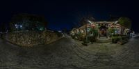 A night view of a Chinese restaurant and street in Lijiang, Yunnan. The historic architecture and cobblestone road create an enchanting atmosphere. The street is lined with shops and storefronts, offering a glimpse into city life in this ancient village.