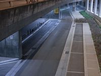 Aerial view of a city at night with illuminated streets and buildings. The urban landscape is bathed in artificial light, creating a striking contrast between light and dark. Bridges and underpasses connect the city, showcasing its urban design.