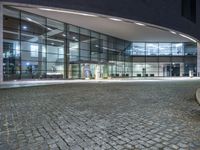 This stock photo features a modern office building in Lisbon, Portugal. The building has many glass windows, providing a stunning view of the city at night. The outside walkway and bench add to the urban design of the area. The composite material used in the facade gives the building a sleek and contemporary look. The artificial light from the building illuminates the cobblestone road and creates a vibrant city atmosphere. This photo captures the essence of city life in Europe, with its modern architecture and bustling business district.