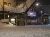 This stock photo features a stunning night view of a building located in a snow-covered ski resort in France. The beautifully lit building stands out against the dark sky and snow-covered surface. The artificial lights create a warm and cozy atmosphere, inviting tourists to enjoy the winter activities the resort has to offer. This image highlights the charm and beauty of the French Alps, making it a perfect representation of winter tourism in Europe. The ski resort also houses a restaurant, offering a delightful dining experience for tourists who want to eat out while enjoying the picturesque surroundings.