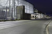This stock photo showcases a night view of a city street in Toronto, Canada. The modern architecture of the buildings and street lights illuminate the urban design. The road surface made of asphalt and tar is surrounded by vegetation and clear sky. The street lights cast a soft light on the facade of the buildings, creating a harmonious blend of artificial light and darkness. The photo captures the essence of urban life, with its bustling streets and warehouses in the background.