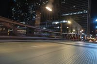 A captivating night scene of downtown Chicago, Illinois. The modern architecture stands tall against the dark, empty streets. Vibrant artificial lights create stunning streaks, showcasing the vibrant city life of this metropolitan area.