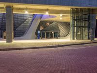A futuristic architecture with neon lights illuminates the city streets at night. The modern building with a metal facade and architectural structure stands tall amidst the urban landscape. The road surface is paved with concrete, and street lights cast long shadows. This cityscape captures the essence of city life, blending artistry and architecture in a captivating display of tints and shades. Whether it's a museum, office building, or hotel headquarters, this photograph portrays a vibrant urban design that is sure to captivate your audience.