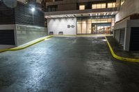 Nighttime Cityscape with Car and Bicycle at Street Corner