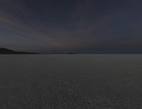 This is an image captured at dawn in Utah. The dark, calm atmosphere contrasts with the clear sky, creating an emotional and serene landscape. The mountains in the background provide a dramatic backdrop to the desert scenery. In the foreground, there is a lake with a smooth surface reflecting the blackness of the night. The contrails in the sky add an additional element to the composition. This photo represents the beauty of nature and the peacefulness of the Utah desert landscape.