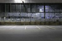 A night view of the modern architecture in Toronto, Canada. The cityscape is illuminated by street lights and artificial light. The dark grey tones and symmetrical lines create a striking urban design.