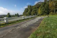 A scenic two-lane road in North Carolina's lush countryside. The tree-lined road curves through the green landscape, with vistas of the Appalachian mountains in the distance. A perfect destination for recreational activities.