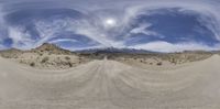 The mountainous landscape of Alabama Hills, California, showcases gravel and dirt roads beneath an endless clear sky, ideal for off-road exploration. Vast desert open spaces provide stunning views of the USA's rugged natural beauty.