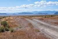 This stunning stock photo captures the rugged beauty of California's desert landscape. With clear skies above, the off-road track winds through the highlands, surrounded by mountains and vegetation. The road surface, covered in dirt, gravel, and asphalt, provides an exciting challenge for adventurous nature enthusiasts. The image showcases the diverse natural environment, with grassy land lots contrasting against the barren desert terrain. A day filled with exploration and adrenaline awaits in this off-road paradise.
