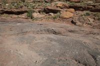 a woman standing in front of some rocks looking down on a bike ride through the wilderness