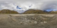 the camera is positioned in front of a big mountain range with low mountains in the background