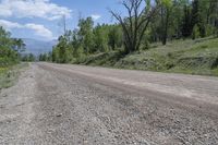 This image captures the beautiful landscape of Telluride, Colorado in the USA. The photo showcases a lush forest with green grass and tall trees. The dirt road and off-road track can be seen winding through the mountains, surrounded by nature. The cloudy sky adds a touch of drama to the scene. The road surface is a mix of asphalt, soil, and gravel, reflecting the rural setting. This photo represents the natural beauty and infrastructure of Telluride, making it an ideal destination for nature lovers and adventure enthusiasts.