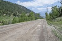A scenic landscape in Colorado, USA. Lush green forests and grassy meadows surround a winding dirt road. Majestic mountains and fluffy clouds complete the picturesque view. Off-road enthusiasts will love the adventure on the rugged terrain of Telluride's Ilium Road.