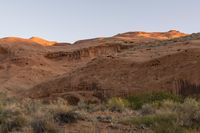 A man riding a horse through the stunning landscape of Utah. The desert valley is surrounded by majestic red cliffs, creating a breathtaking view. The open space and clear sky make it an ideal day for exploring nature on horseback.