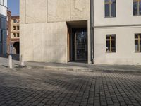 A sunny day in Berlin, Germany, showcasing the city's modern architecture. The vibrant city life is reflected in the beautiful facades of the office buildings and houses. Cobblestone roads and urban designs create a unique urban experience in this European business district.