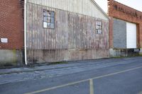 An old brick factory in Johnson City, Tennessee, stands out with its vibrant red and yellow stripes. The faded ghost of another building adds a touch of urban history to this industrial landscape.