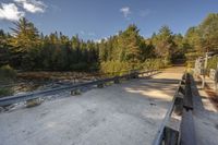 A serene park in Ontario, Canada. The concrete bridge spans over a peaceful lake, surrounded by lush vegetation and trees. Benches offer a perfect spot to relax and enjoy the picturesque landscape.
