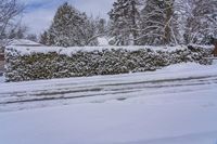 This stock photo depicts a gloomy winter morning in Ontario, Canada. The image shows a residential road covered with asphalt, leading towards a picturesque home surrounded by snow-covered evergreen trees. The grey sky adds to the overall gloomy atmosphere. The branches of the trees are laden with snow, and a single bird is perched on a twig. The freezing temperatures have created a serene and tranquil landscape, perfect for capturing the essence of a winter day in Ontario, Canada.