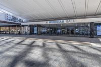 A view of a modern office building in downtown Toronto, Canada. The glass facade reflects the surrounding city life and the blue sky. Concrete sidewalks and asphalt roads create a stark urban landscape.