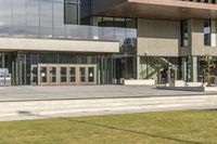 This photo captures a modern architectural building in Toronto, Ontario, Canada. The building features a glass facade with plenty of windows, creating an open and airy atmosphere. The grassy lawn in front of the building provides a welcoming outdoor space for the mixed-use property. This urban design is situated in the heart of the city, making it a bustling hub for business and shopping. The building serves as corporate headquarters and houses various shops and office spaces. With its sleek design and prime location, this property represents the epitome of urban living and real estate.