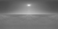 An open space with clear skies and a visible sun, captured in a calibrated and colour accurate RAY HDRi Map. The natural grey tones evoke a serene dawn on a sunny day.