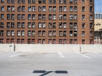 Daytime view of Los Angeles, California showcasing open spaces and classic architecture. Under clear skies, a concrete roadway and parking deck highlight the city's urban charm.