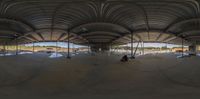 A view of a large open space construction site. The concrete surface dominates the area, contrasting with the cloudy sky. A profile of the dirt area reveals a gravel surface. Straight down the road, the scene captures the essence of the construction site.