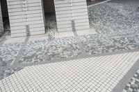 This image showcases the modern architecture of a building in Hong Kong's business district. The property features an open space plaza with a unique patterned tiled floor and brick walls. The mesh net on the curved stair adds a touch of contemporary design. Inside the building, the interior design is characterized by a spacious room with modern furniture and a sleek table. The entryway and the courtyard are lined with textured textile walls, creating a sophisticated and inviting atmosphere. This photo represents the melding of business and design in the bustling city of Hong Kong.
