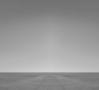 an empty, white floor on the ground with a plane approaching it in the distance