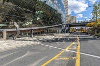 A modern architecture office building in Ottawa, Canada. The glass walls reflect the clear sky above, while the surrounding neighborhood thrives with residential areas and business districts. City life at its finest, with futuristic architecture and well-designed public spaces.