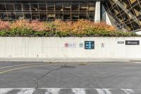 This image depicts a busy city street in Ottawa, Canada. The photo captures a view of an office building with a very high wall covered in signs. The traffic light is prominently displayed near the intersection, showing the urban design and grey asphalt road surface. A line of trees and vegetation can be seen along the sidewalk, adding a touch of nature to the cityscape. This photo represents the bustling city life in Ottawa's business district. It showcases the art of urban design and the vibrant energy of this Canadian city.
