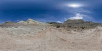 A panoramic view of the rugged terrain in Utah, USA. The red rock landscape, open spaces, and mountain ranges create a stunning natural backdrop. The clear sky contrasts with the gloomy atmosphere. A unique perspective from the bottom of the lens.