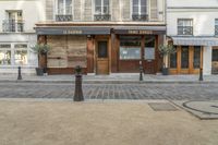 A charming cobblestone street in Paris at dawn. Classic architecture and facades of restaurants and cafes create a picturesque scene. The perfect place for an early morning stroll or to enjoy a meal in the break of day.