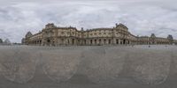 A time-lapse view of a historic town square in Paris, France. Classic architecture and cobblestone streets create a charming urban design. The grey sky adds a touch of gloom to the scene.
