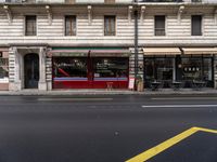 this is an outside restaurant that is on the corner of a street in paris with the entrance and windows open