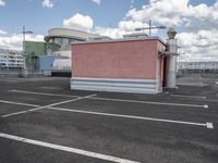 This is an image of a modern residential building in the city of Berlin, Germany. The architecture of the building is characterized by its clean lines and contemporary design. The clear sky above highlights the facade of the building, while the asphalt road and parking deck create an urban feel. The image captures the urban design and city life of Berlin, showcasing the modern architecture and open spaces. The roof and road surface provide contrasting textures, adding depth to the composition. This photo represents a typical day in the city and embodies the charm of urban living in Europe.