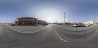 a 360 degree view of a parking lot taken with a fish eye lens on camera