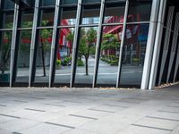 Person with Umbrella Walking in Front of Glass Building